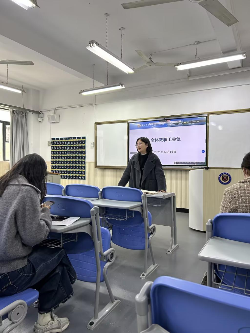 12月10日,会计学院召开主题工作会议,全面梳理近期工作成果,部署下一阶段重点任务。会议由学院郑晓燕院长主持,各教研室主任及全体教职工与会,咸宁地区线上与会。