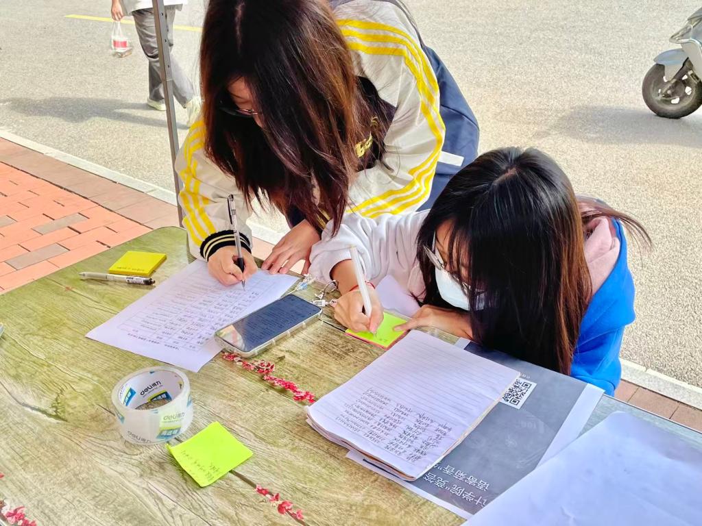 活动现场两校区学子参与热情高涨,现场氛围热烈又温馨。在“重阳习俗知识竞答”环节,题目涵盖重阳节登高、赏菊、插茱萸、吃重阳糕等传统习俗的起源与演变,学子们积极抢答、认真思考,在紧张的竞答中加深了对重阳节文化内涵的理解;在“重阳寄语书写”环节,大家或提笔写下对长辈的感恩祝福,或摘录“遥知兄弟登高处,遍插茱萸少一人”等经典诗句,或原创温情寄语,一张张卡片承载着对传统的敬意与对亲人的牵挂,字里行间满是真诚与暖意。