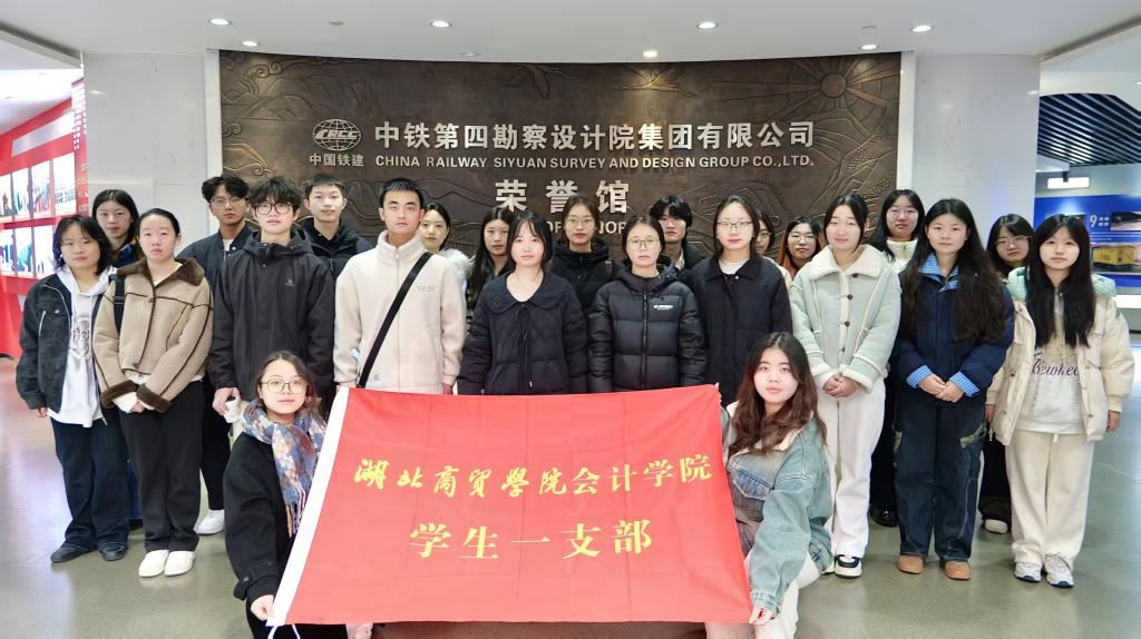12月12日,会计学院一堂特殊的“班会”不在教室里召开,而是“行走”到了中铁第四勘察设计院集团有限公司。这场以“铁道经纬,青春同行”为主题的实践教学活动,突破传统课堂边界,带领学生深入企业一线,在看、听、问、思中完成了一堂沉浸式的“专业认知与价值引领”实践课。