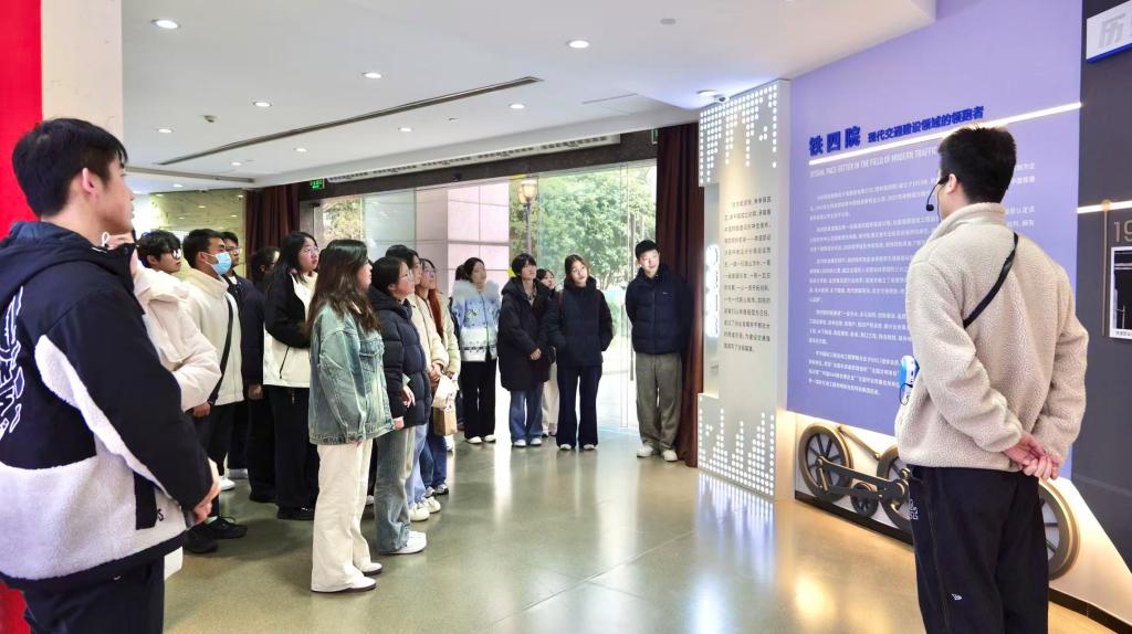 在企业展厅,同学们沿着中国铁路发展的时间轴,从蒸汽机车到复兴号高铁,从普速路网到“八纵八横”,直观感受了几代铁路人的奋斗足迹和设计智慧。一个个精细的线路模型、一张张珍贵的勘察图纸,让同学们深刻体会到何为“大国工匠”,何为“科技报国”。