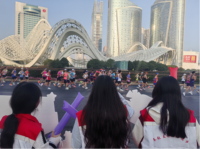 11月16日,武汉光谷国际马拉松鸣枪开跑。会计学院铭心志愿队积极响应“全民健身”号召,以“志愿青春聚光谷,热血助威耀江城”为主题,奔赴赛事10公里服务点,在寒风中以热情服务点亮赛道,展现青年担当。