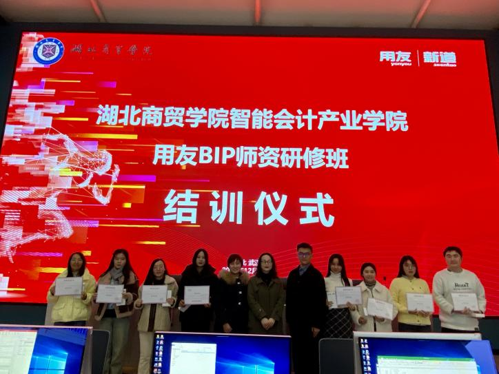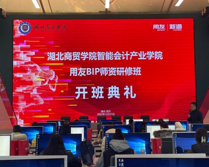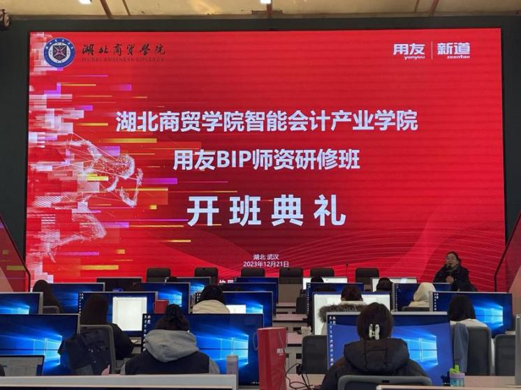 为进一步加快提升新趋势下数智化新商科专业建设,帮助学院教师掌握大数据、人工智能等技术并融入课堂教学,会计学院与新道科技股份有限公司于2023年12月联合举办了“湖北商贸学院智能会计产业学院用友BIP师资研修班”,会计学院共22位老师参与了此次为期四天的培训学习。
