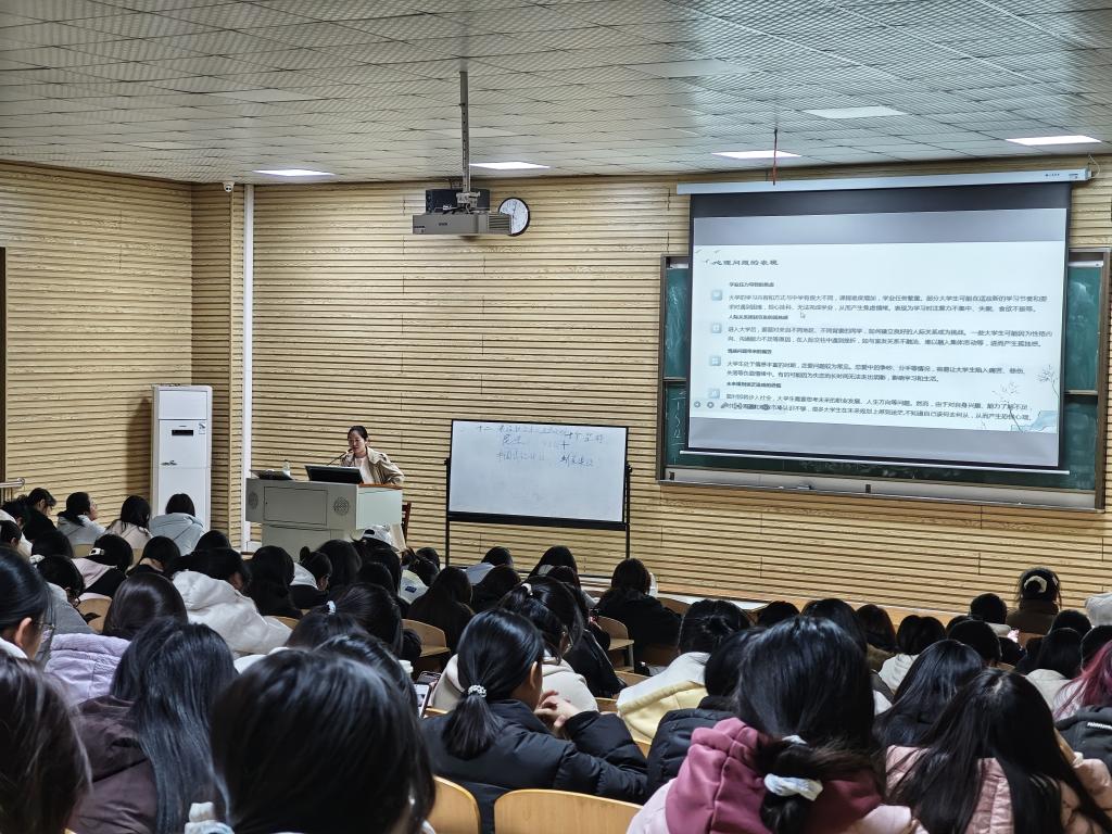 讲座中,张雨瑶结合“脆皮大学生”这一网络热词,生动解读了当代大学生在身体和心理层面的脆弱现状。从学业压力引发的焦虑、人际关系困扰带来的孤独感,到情感问题导致的痛苦、未来规划迷茫引发的恐慌,深入剖析了大学生常见的心理问题表现,让学生们对自身心理状态有了更清晰的认知。同时,现场推荐了《蛤蟆先生去看心理医生》《被讨厌的勇气》等心理书籍,为学生提供了自我疗愈的有效途径。