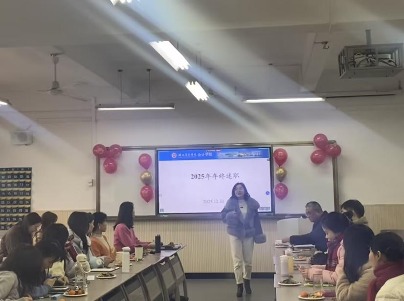 2025年12月31日,会计学院年终总结述职大会在行政楼B-601举行。院长郑晓燕、党总支书记詹卓以及全院教职工齐聚一堂,共同回顾过去一年的工作成果,展望未来发展蓝图。